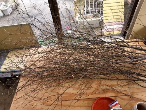※黒文字 既に花芽が膨らみ始めている黒文字の枝を採取して帰り、ちまちまお茶用に加工しています 花芽が膨らんでいる この枝を押切、ハサミなどで1センチ未満に裁断していく 刻んだものはカビなどが生えないように乾燥します。 今日の作業は薪ストーブに火…
