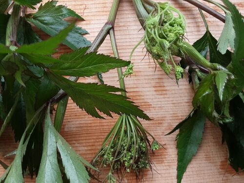 ※当帰 栽培に挑戦して今年で足掛け5年になる当帰、最初は数本の小さい苗を育てるところから始まり、2年目で花が咲き種の収獲に成功しすぐに播種を試みその年に発芽に成功!一冬間歩にて24時間光合成に必要な灯りを点け成長を促した苗を昨年圃場に植え付ける…